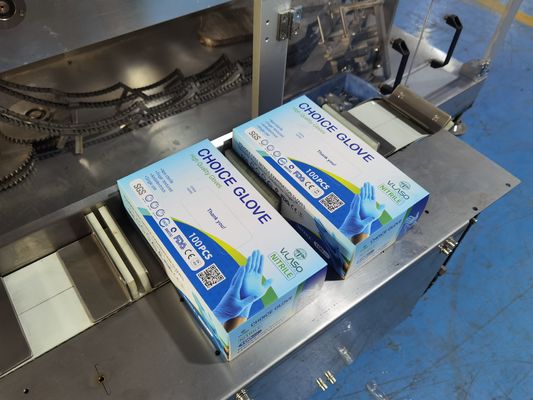 বহুমুখী উল্লম্ব কার্টোনিং মেশিন স্বয়ংক্রিয় 100 পিসি ডিসপোজেবল নাইট্রিল গ্লাভস বক্স প্যাকিং মেশিন